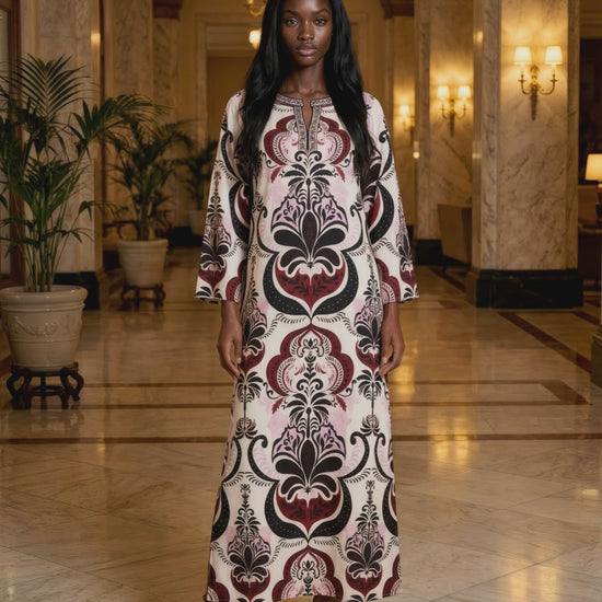 Escape to the French Riviera with our St Tropez Printed Maxi Dress, a timeless piece that captures effortless elegance. Featuring an all-over print design, this flowing maxi silhouette drapes beautifully for a flattering, sophisticated look. Choose between rich Plum for evening drama or serene Blue for daytime versatility. Perfect for garden parties, destination weddings, or elevated casual occasions, this dress transitions seamlessly from season to season. The generous length and relaxed fit ensure comfort without compromising on glamour—a wardrobe essential for those who appreciate refined style.